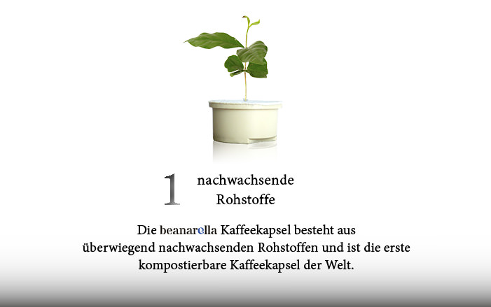 Mit der Entwicklung der beanarella-Kaffeekapseln ist uns eine Weltneuheit gelungen. Es sind die ersten Kaffeekapseln der Welt, die das Keimlingsiegel tragen. Diese Zertifizierung steht für eine nachweisliche Kompostierbarkeit nach EN13432. In einer Kompostierungsanlage sind unsere Kapseln in nur 4-12 Wochen abgebaut.